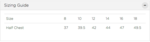 Half Chest (cm) 37 39.5 42 44.5 47 49.5 52